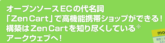 ※アークウェブは、2004年にZen Cartを「Zen Cart日本語版」として日本市場に初めてリリースし、「Zen Cart携帯モジュール」の開発もメインで行いました。