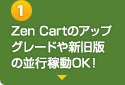 Zen Cartの旧バージョン(1.2系や1.1系)を導入しているサイトでも、スムーズなアップグレード作業や旧バージョンとの並行稼動などを行うことができます。