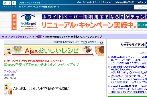 先日、アイティメディア様より、「@ITでAjaxネタの連載をしませんか?」というオファーをいただきました。
