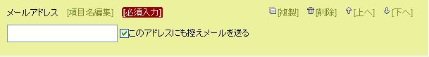 また、このパーツには、「このアドレスにも控えメールを送る」という特別なチェックボックスがあって、ここにチェックを入れておくと、入力されたメールアドレス宛にユーザ宛の受付控えメールを送れるようになります。