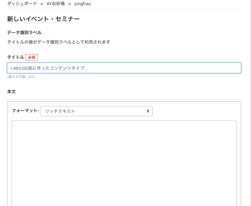 バージョンアップ後に作ったコンテンツタイプでは、最初から前述のようなツールボタンが現れます。 ところが、バージョンアップ以前からある既存のフィールドは、インラインツールのままなんの変化もありません。あれれ?